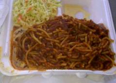 We did splurge on two of our meals, stopping by Inter-State BBQ on the trip out (I had the ribs, she had BBQ spaghetti—yes, it sounds weird, but let me just tell you it’s divine) and Gus’s World Famous Chicken on the way home.